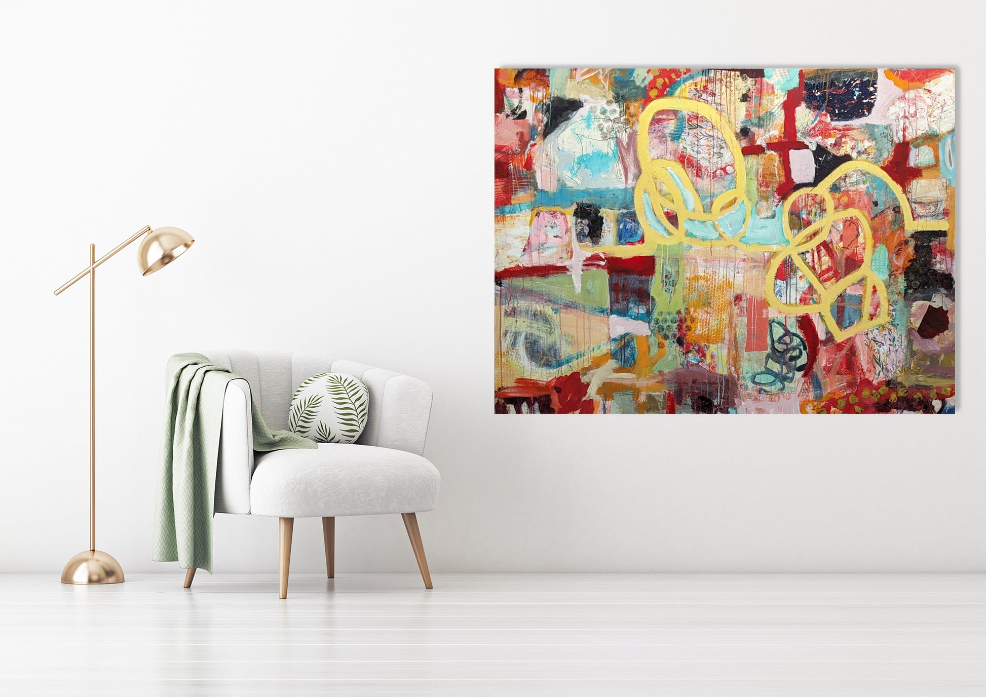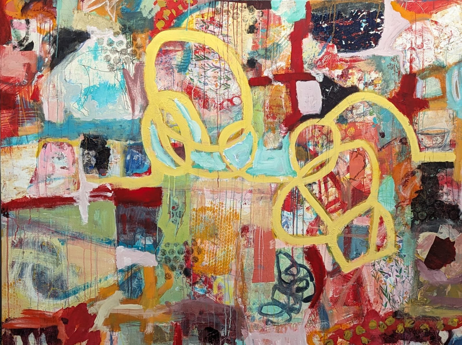 Materials: mixed media, collage, acrylic on canvas